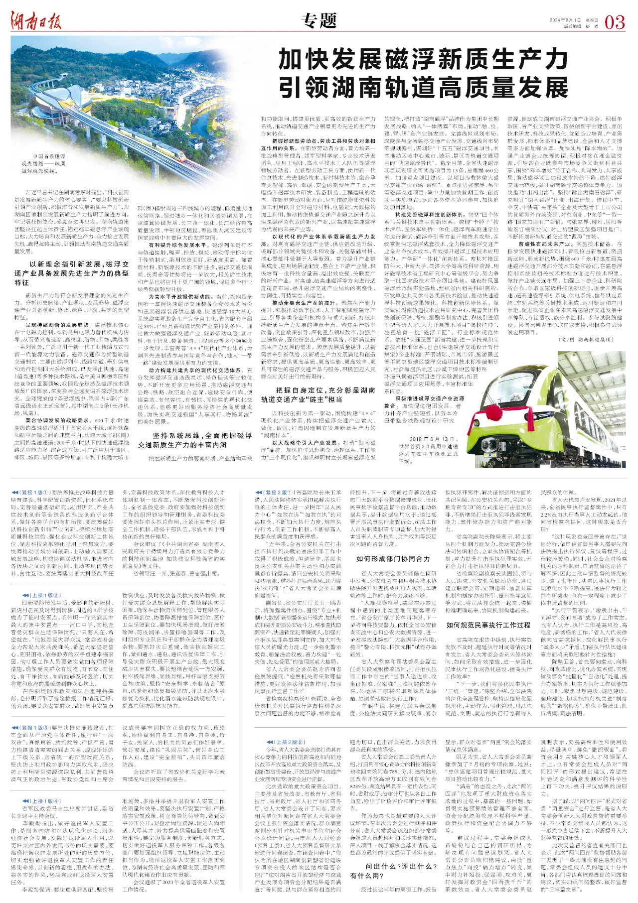 加快發(fā)展磁浮新質(zhì)生產(chǎn)力引領(lǐng)湖南軌道高質(zhì)量發(fā)展 習(xí)近平總書(shū)記在湖南考察時(shí)指出,“科技創(chuàng)新是發(fā)展新質(zhì)生產(chǎn)力的核心要素”,“要以科技創(chuàng)新引領(lǐng)產(chǎn)業(yè)創(chuàng)新,積極培育和發(fā)展新質(zhì)生產(chǎn)力”,為湖南因地制宜發(fā)展新質(zhì)生產(chǎn)力指明了前進(jìn)方向。牢記囑托擔(dān)使命,感恩奮進(jìn)再出發(fā)。湖南軌道集團(tuán)...